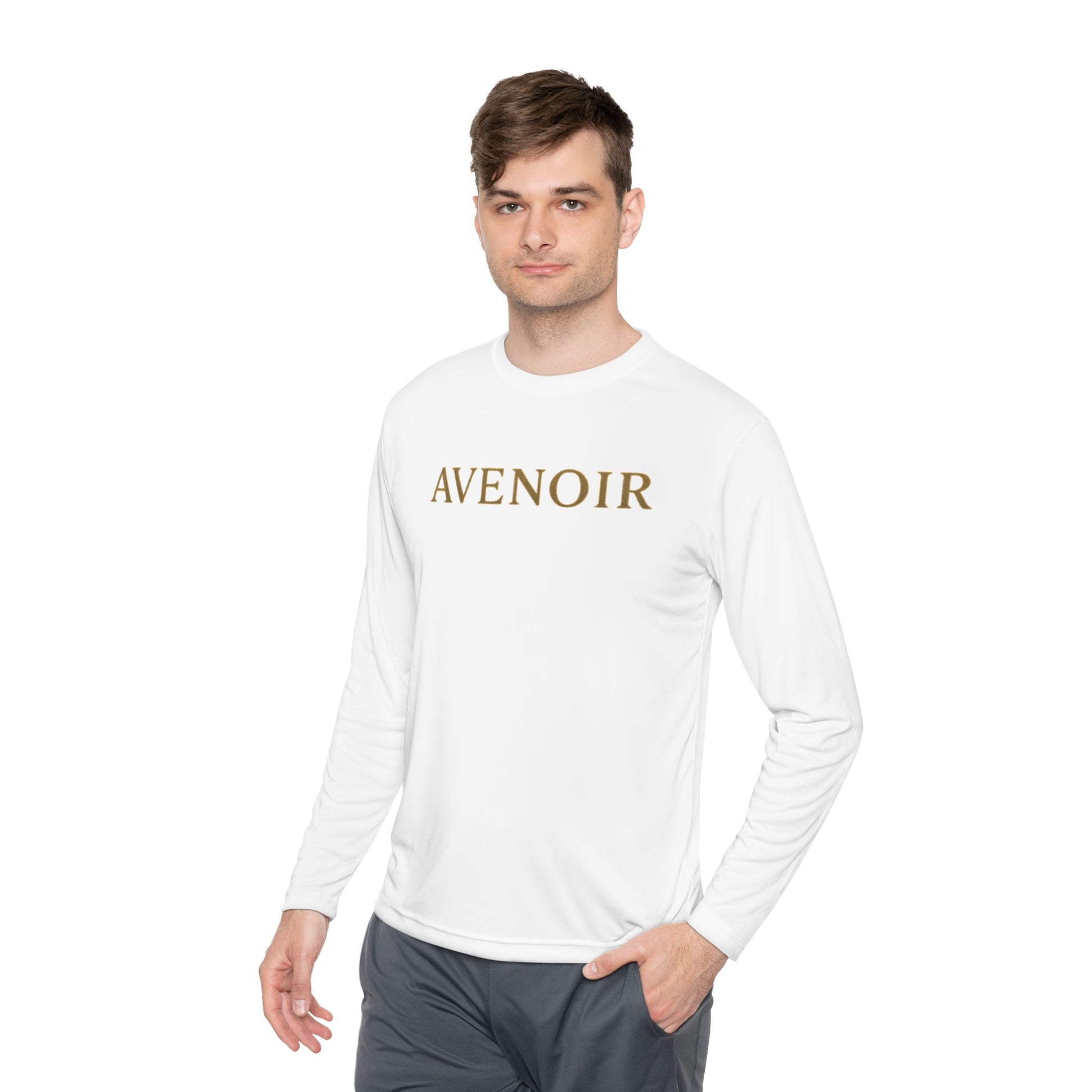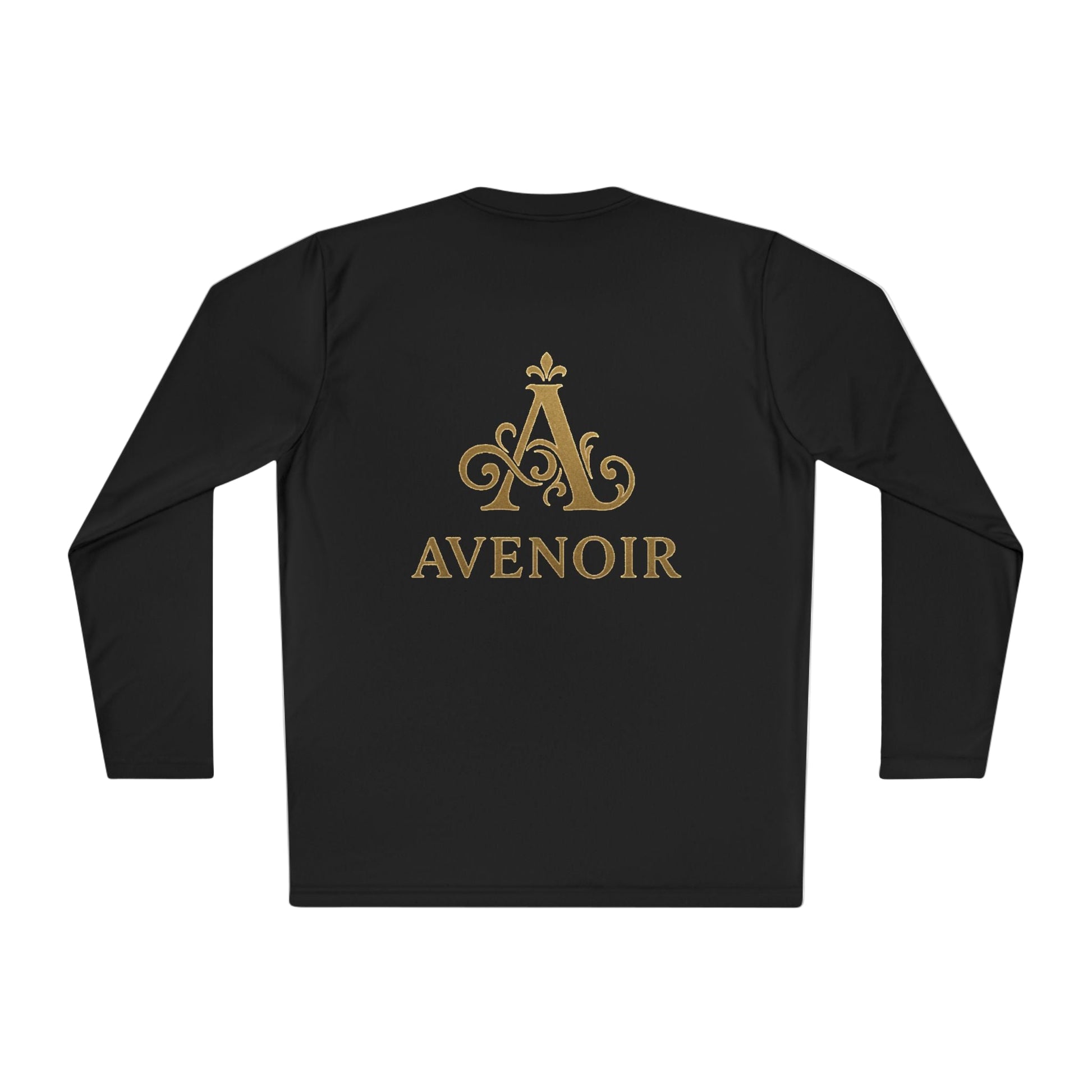 A slim, breathable long-sleeve that feels like a second skin. Lightweight moisture-wicking polyester keeps you cool during runs, sunrise walks, or layered city mornings. The understated gold “AVENOIR” wordmark across the chest and the ornate monogram on the back give it a quiet, refined presence — wearable confidence for days when you want to look composed without trying. The athletic cut moves with you; the tear-away label stays out of the way. Wear it as a warm-up top, travel layer, or a minimalist statement for casual outings and low-key events.